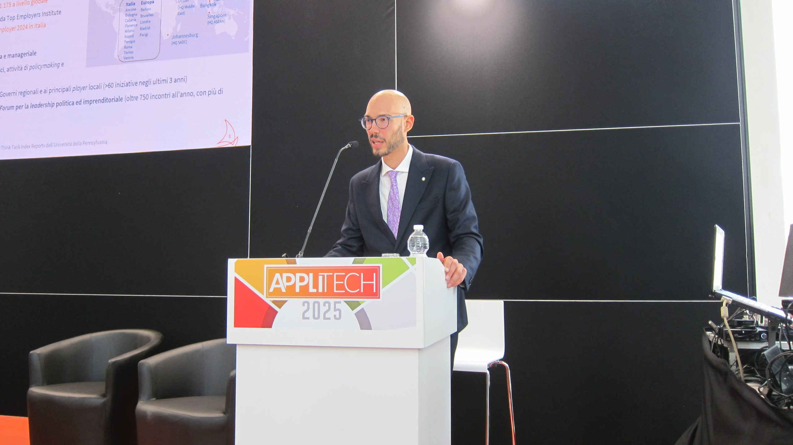 The institutional perspective was brought to Applitech 2025 by Honorable Andrea De Maria, Secretary of the Parliamentary Commission of Inquiry into Security Conditions and the State of Decay in Cities and their Suburbs. He recalled that Italy is the first EU country to pass a law on Artificial Intelligence. De Maria emphasized the importance of this legislative act, while identifying some shortcomings. The law aims to promote a more anthropocentric, transparent, and secure use of AI. In concrete terms, the measure has led to the creation of two government agencies: the National Cybersecurity Agency and the Agency for Digital Italy. In addition, the national strategy for AI will be defined and updated every two years by the Department for Digital Transformation of the Presidency of the Council of Ministers.