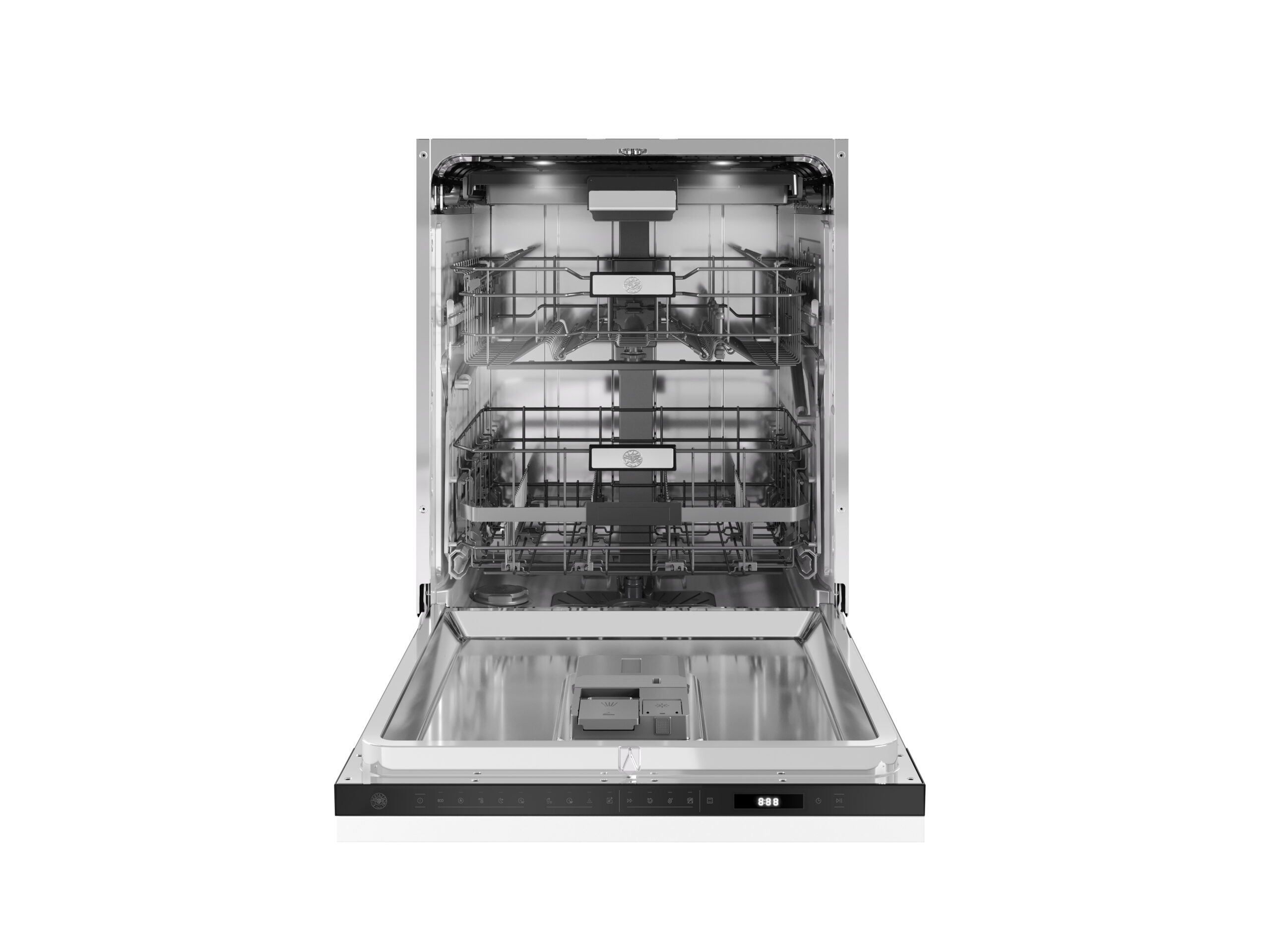 Thanks to the Direct Wash system with dedicated nozzles, Bertazzoni dishwashers reach even the most stubborn stains with targeted jets, ensuring deep cleaning without wasting water or energy. The DualSmart Brushless motor with double pump and turbidity sensor optimises energy consumption and washing performance, while the Smart Auto Dose system automatically dispenses detergent for up to 12 consecutive washes, ensuring efficiency and convenience without having to rinse dishes before placing them in the dishwasher.