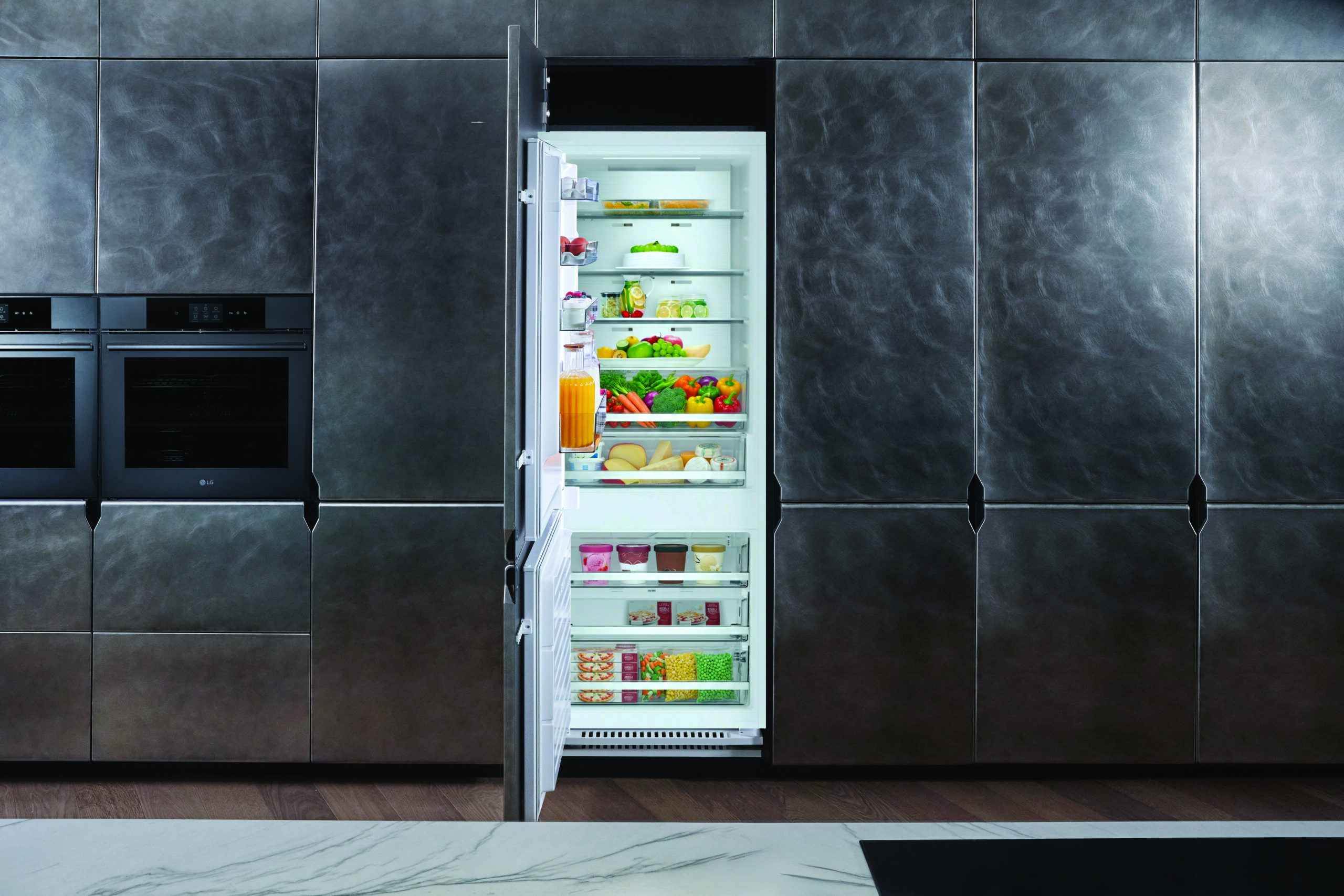 The new Fit & Max 75 cm built-in refrigerators with Artificial Intelligence present, for example, the Fresh Balancer drawer for storing fruit and vegetables and the Fresh Converter drawer with temperature control across three levels. On the other hand, one of innovations of the LG InstaView built-in oven range is Inverter ProBake, an advanced counter-rotating airflow system that ensures even cooking and professional results on every oven rack.
